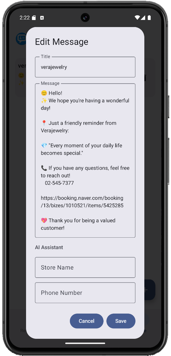 Just enter your business name and a short intro—AI will suggest the perfect message for every situation.