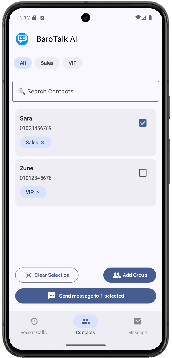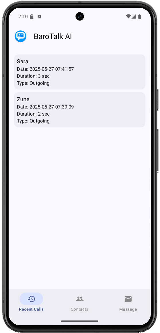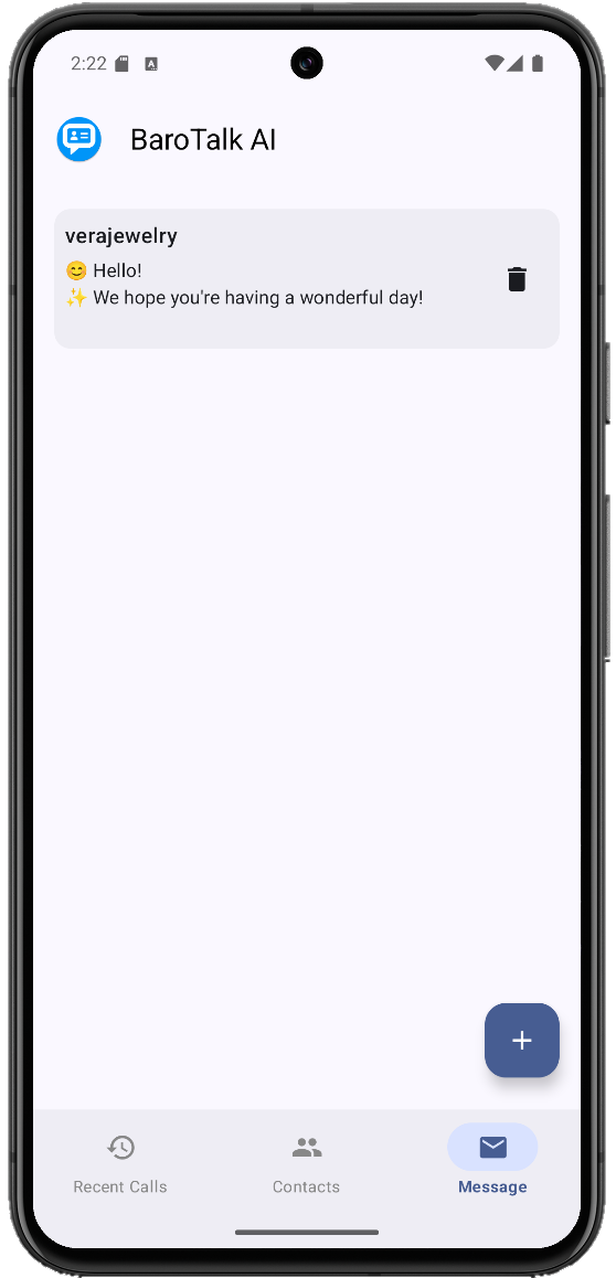 BaroTalk (BaroTalk AI) helps you send business greeting messages and contact card images instantly after each call.